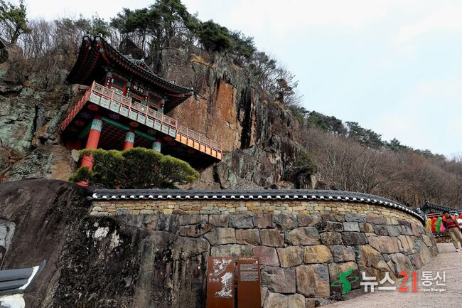 암자는 절벽 바위에 기대어 지어져 있어 독특한 경관과 함께 섬진강 일대를 한눈에 내려다볼 수 있다.