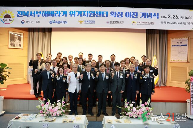 원광대학교병원(병원장 서일영)이 운영하는 전북서부해바라기 위기지원센터(소장 김병륜)가 지난 26일(목) 외래동 4층 대강당에서 대내‧외 귀빈들과 주요 업무 관계자들이 참석한 가운데 열린 확장 이전 기념식을 성료했다고 밝혔다. 이번 확장 이전은 성폭력·가정폭력·성매매 피해자 등 위기 상황에 처한 대상자들에게 보다 쾌..