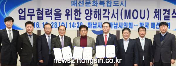 하남시(시장 권한대행 이종수 부시장)는 지난 28일 하남시의회와 한국패션협회 3자간 패션문화복합도시 추진을 위한 업무협약(MOU)을 체결했다.