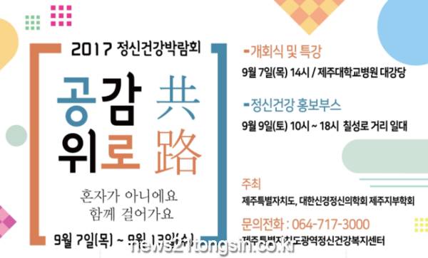 제주특별자치도 및 제주특별자치도광역정신건강복지센터에서는 2017년 세계 자살예방의 날(9.10) 및 세계 정신건강의 날(10.10)을 기념하여 제주도민들의 생명존문화조성과 정신건강 인식개선을 위하여 2017 정신건강박람회를 개최한다.