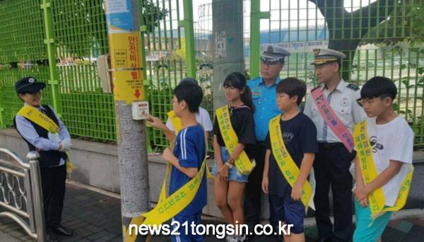 특히 이날 행사에서는, 신제주초 어린이 5-7명으로 현장체험관찰단을 구성하여 어린이들이 학교주변에 설치된 방범용 CCTV와 연계된 비상벨, 학교주변에 설치된 비콘을 활용한 안심제주앱으로 위기상황을 가정하여 112에 직접 신고를 하고 순찰차가 현장으로 출동⁃대응하는 과정을 직접 체험해 보도록 했다.