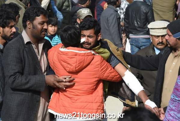 ▲ AFP / BANARAS KHAN[제공자ⓒ 뉴스21통신. 무단전재-재배포 금지.]파키스탄 퀘타의 한 교회에서 발생한 자폭테러 희생자 장례식장에서 슬퍼하는 생존자.