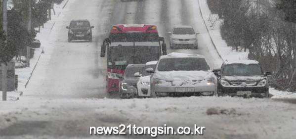 516도로 중 제주대 사거리에서 성판악까지 구간은 빙판길이 돼 대형과 소형차량 모두 진입이 금지됐다. 서성로, 제2산록도로, 명림로, 첨단로, 남조로는 대형·소형 차량 모두 월동장비를 갖춰야 운행할 수 있다.