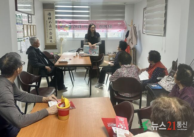 [뉴스21 통신=최병호 ]*사진출처-울산북구청북구 효문동은 12일 상연암경로당에서 어르신 대상 건강 교육 프로그램을 열어 만성질환 예방 및 관리 방법에 대한 교육을 실시했다.