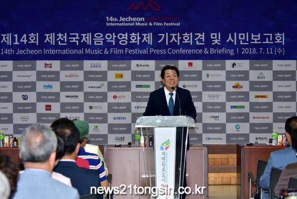 ▲  11일 제천시청 대회의실에서 제14회 제천국제음악영화제의 공식 기자회견이 열렸다.이상천 제천시장은“영화제가 시민에게 인정받고 사랑받는 영화제가 되도록 적극 소통하고 협력해서 제천의 대표 행사되도록 노력하겠다제14회 제천국제음악영화제의 공식 기자회견 및 시민보고회가 11일 제천시청 대회의실에서 열렸다.