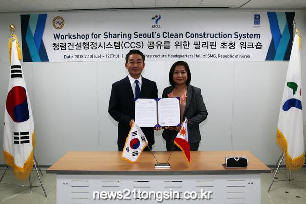 (뉴스21통신/서울서부취재본부)= 서울시는 서울시가 운영하고 있는 건설정보관리시스템, 건설알림이, 대금e바로 등 ‘청렴건설행정시스템(Clean Construction System, CCS)’을 공유하기 위해 필리핀(내무부)과 업무협약(MOU)을 7월 10일(화) 맺고 워크숍을 7월 12일(목)까지 갖는다고 밝혔다.