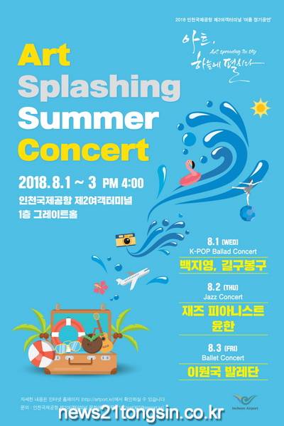 ‘Art Splashing Summer Concert’라는 주제로 열리는 이번 여름 정기공연은 K-POP 가수, 피아니스트, 발레단 등 다양한 장르의 예술인이 참여해 휴가철 인천공항을 찾은 국내외 여행객과 상주직원, 방문객에게 감동의 무대를 선보일 예정이다.