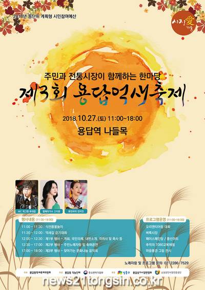 김재경 용답동장은 “주민들이 스스로 준비한 이번 축제에 많은 주민들이 참여해 도심 속 억새밭에서 가을 정취를 느끼고, 다양한 체험을 즐기길 바란다”며, “앞으로도 주민 공동체와의 활발한 소통을 통해 용답동을 대표하는 축제로 자리매김해나가겠다”고 말했다.