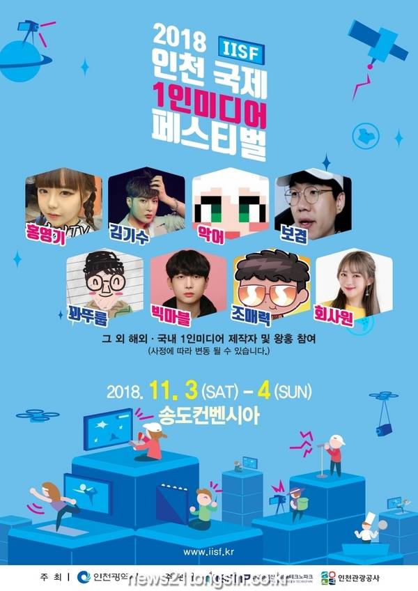 ▲ 2018인천국제1인미디어페스티벌 라인업인천광역시가 주최하고 인천경제산업정보테크노파크와 인천관광공사가 주관하는 ‘인천 국제 1인미디어 페스티벌’의 유명 1인 미디어 제작자 라인업이 확정되었다.