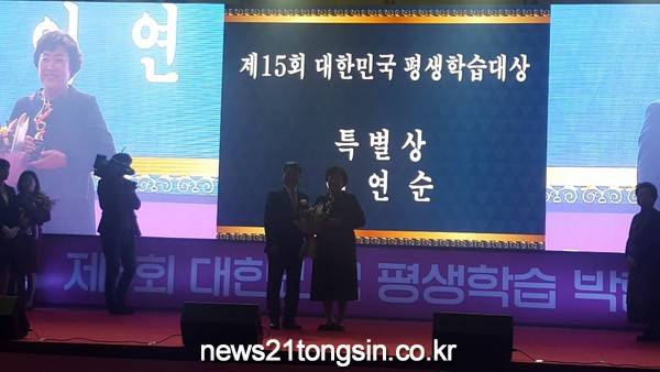 지난 25일 오후 벡스코 주 무대에서 개막식과 함께 개최된 대한민국평생학습대상 시상식에서는 제천시 평생학습 강사로 활발하게 활동하고 있는 이연순 식품명인(향토음식개발 원장)이 특별상을 수상하는 쾌거를 거두었다.