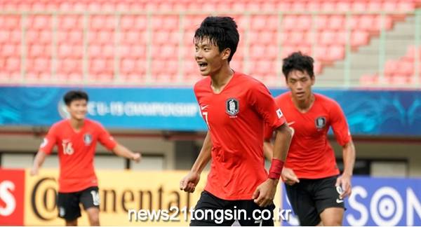 ▲ 타지키스탄과의 8강전에서 결승골을 넣은 전세진(사진=대한체육협회)정정용 감독이 이끄는 한국 U-19 남자축구대표팀이 타지키스탄을 물리치고 내년 폴란드에서 열리는 ‘2019 국제축구연맹(FIFA) U-20 월드컵’ 출전권을 따냈다.