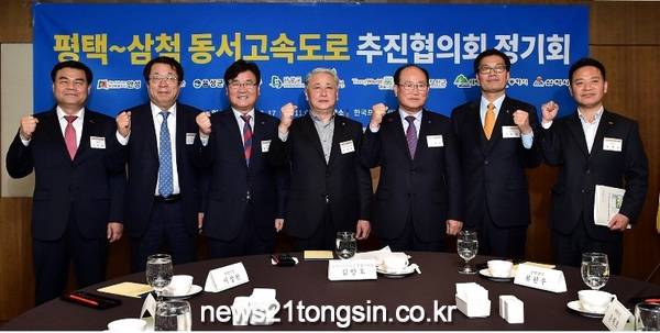 ▲ 17일 서울시 소재 한국프레스센터에서 회장인 김양호 삼척시장의 주재로 상정된 총 6건의 안건을 논의하는 시간으로 진행됐다.충북 제천시는 17일 서울시 소재 한국프레스센터에서 열린 동서고속도로 추진협의회에 참석해 동서고속도로 추진을 위한 마음을 함께 했다고 밝혔다.