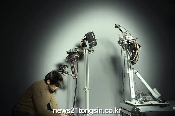 권병준은 4차 산업혁명을 경도하는 이들에게 ‘춤추는 로봇’이라는 역설적이며 풍자적인 비평을 던진다. 그의 로봇들은 로봇 본연의 ‘높은 생산력’의 구현에는 아무런 관심이 없어 보인다. 로봇들은 온종일 구걸의 손을 내밀며(혹은 악수를 청하며) 술에 취해 비틀거리거나 설교하고 시위하고 정찰하는 등의 효용성 없는 행동들에 전념한다. 그리고 돌연 함께 춤춘다.