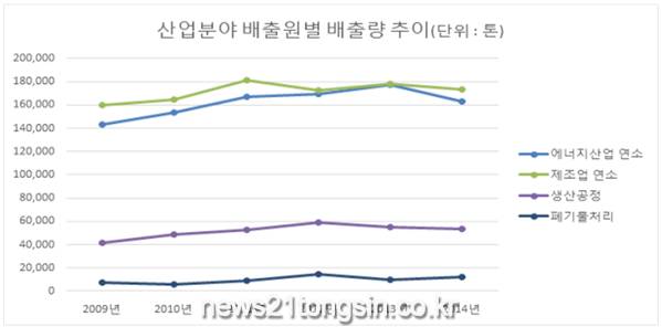 ▲  산업분야 질소산화물 배출량환경부(장관 조명래)는 사업장에서 배출되는 대기오염물질인 ‘질소산화물(NOx)’에 대해 대기배출부과금을 도입하는 내용을 골자로 한 ‘대기환경보전법 시행령’ 개정안이 12월 24일 국무회의에서 의결되었다고 밝혔다.