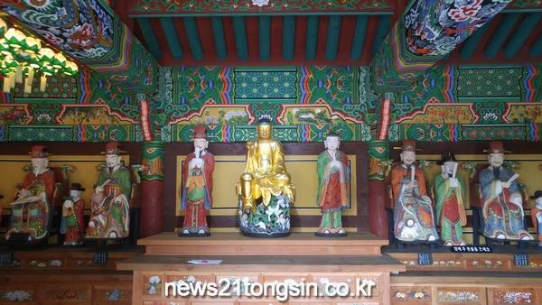 지장삼존상은 망자(亡者)의 영혼을 위로하는 지장보살을 안치한 전각인 명부전(冥府殿) 중앙 불단에, 시왕상은 좌우 벽면에 봉안돼 있다.