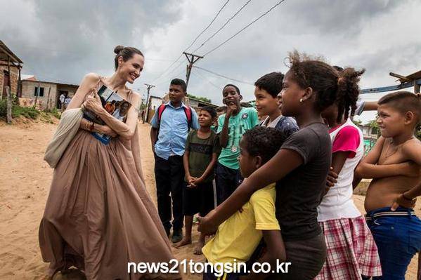 ▲  사진=로이터통신미국 여배우 안젤리나 졸리는 8일(현지시간) 남미 콜롬비아를 방문하여 이반 두케 대통령과 회담하고 이웃 나라 베네수엘라에서 콜롬비아로 피난 아이들의 지원을 요청했다.