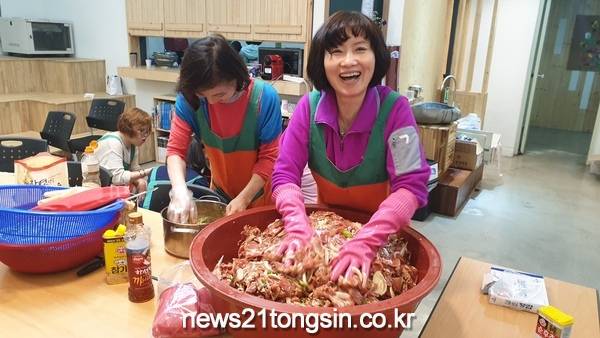 이에 동에서는 돌봄이 필요한 가구를 정기적으로 방문해 영양식을 지원하고, 안부를 확인하고 있다. 동 협의체 위원들은 매월 첫째, 셋째 월요일에 동주민센터 해아림마을회관으로 모여 질 좋은 재료로 영양죽과 밑반찬을 만든다. 개별 포장을 마친 음식들은 독거어르신과 위기 중장년가구의 집으로 방문해 전달하고, 정답게 인사를 건네며 안부를 확인한다. 그들의 끼니뿐만 아니라 외롭고 허전한 마음까지 만져주는 것이다. 복날에는 기운 나게 삼계탕을, 설·추석에는 명절 소외감을 훌훌 날려버리도록 불고기, 전, 떡 등 명절음식을 직접 만들어 지원하고 있다.