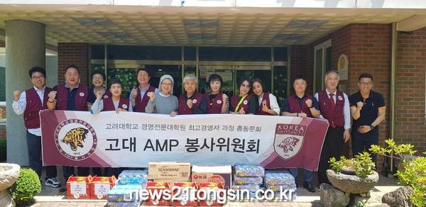 지난 2019년 5월 23일 고대 AMP는 '전주 사랑의집' 을 돕기 위해 다양한 봉사활동을 했으며 생활에 필요한 물품을 전달했고 100만원 후원금도 전달했다.
