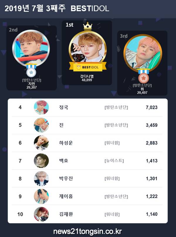 2019년 7월 15일부터 21일까지 진행된 7월 3째 주 투표에서 강다니엘은 4만8899표를 득표하며 1위를 차지했다.