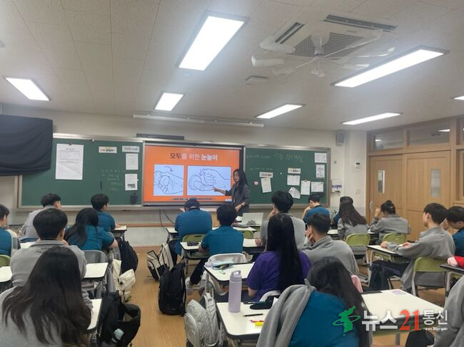 [뉴스21 통신=최세영 ] ▲사진=야음중학교 3학년 5반야음중학교는 10월 20일 호후 장애인 총연합회 크레센도 강사님들을 모시고3학년 전교생에게 장애인식개선 교육을 실시 했다 장애가 개인의 신체적 특성때문이 아니라, 비장애 중심 사회의 제도, 시설, 문화 등 구조적 장벽에서 비롯된다는 점을 강조하며 장애인의 관점에 대해 학...