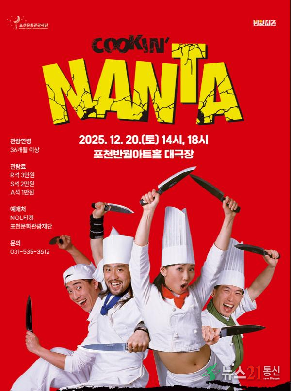 포천문화관광재단(대표이사 이중효)은 오는 12월 20일 포천반월아트홀 대극장에서 대한민국 대표 비언어 퍼포먼스 ‘난타(NANTA)’ 공연을 개최한다.세계적 흥행을 기록한 공연 ‘난타’는 언어 장벽을 뛰어넘는 강렬한 리듬과 유쾌한 웃음으로 전 세계 1,550만여 명의 관객을 매료시킨 한국 공연예술의 대표작이다. 남녀노소 누구.