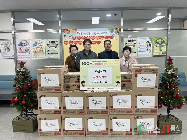 의정부시 고산동주민센터(동장 이봉득)는 11월 19일 고산동 소재 고산교회(담임목사 조성조)가 관내 저소득층을 위한 라면 50상자를 기부했다고 밝혔다.이번 기부는 경제적 어려움을 겪는 취약계층을 지원하고 지역사회에 온정을 나누기 위해 마련됐다. 고산교회는 매년 꾸준히 취약계층을 위한 라면 등 식료품을 기부하는 등 다양한 나눔 활...