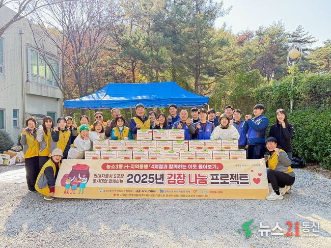 [뉴스21 통신=최병호 ]*사진출처-울산북구청북구 농소3동 지역사회보장협의체는 20일 현대자동차 노사 H-지역동행사업으로 김장나눔프로젝트를 추진, 직접 김치를 담가 취약계층 60세대에 전달하고 안부를 확인했다.