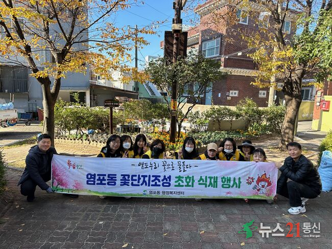 [뉴스21 통신=최병호 ]*사진출처-울산북구청북구 송정동 새마을부녀회는 20일 화동못 수변공원 입구와 공영주차장 일원에 겨울꽃을 심고 환경정비활동을 했다.