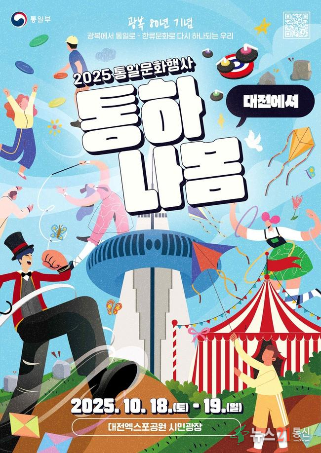 통일부는 오는 10월 18일부터 19일까지 대전 엑스포시민광장에서 ‘광복 80년, 대전에서 다시 시작하는 평화’를 주제로 한 2025년 통일문화행사 ‘대전에서 통하나봄’을 개최한다고 15일 밝혔다. 이번 행사는 남북 화합과 평화의 의미를 시민이 즐겁게 체험할 수 있도록 마련된 참여형 축제다.