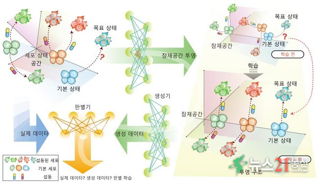연구팀은 이미지 생성 AI의 원리에서 착안해, 세포의 상태와 약물의 반응을 ‘잠재공간(latent space)’에서 수학적으로 분해·재조립하는 모델을 구축했다.