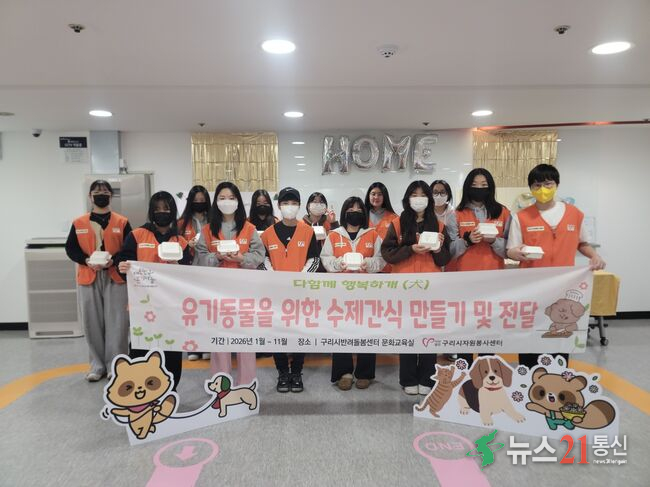 (사)구리시자원봉사센터, 청소년과 함께 유기 동물 수제 간식 만들기 봉사 진행반려돌봄센터와 협력… 생명 존중·나눔 가치 체험 행사 운영구리시(시장 백경현)는 사단법인 구리시자원봉사센터(이사장 백경현)가 구리시 반려돌봄센터와 공동으로 지난 1월 31일(토), 청소년 15명이 참여한 가운데 유기 동물을 위한 수제 간식 만들기 ...