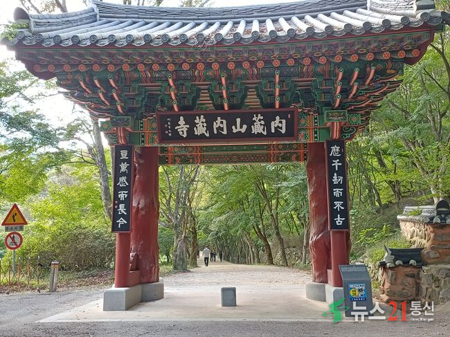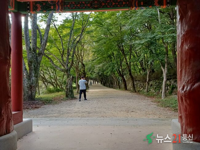 내장사 단풍터널을 지나면 대웅전으로 갈수 있다.