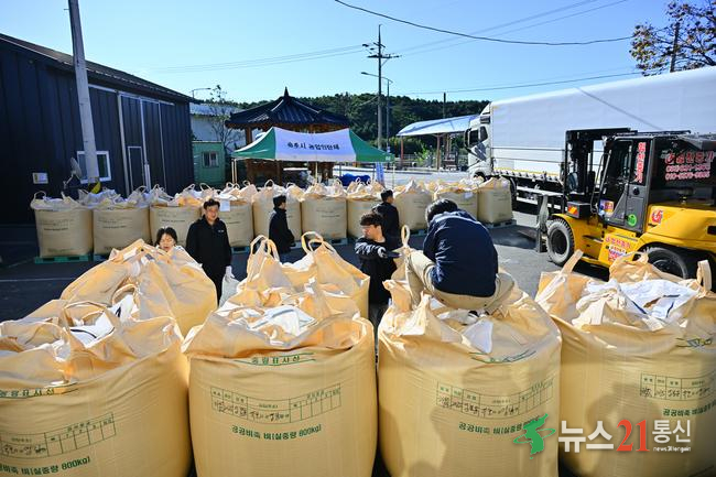 올해 매입 계획 물량은 136.8톤으로, 톤백벼 171포(800kg) 기준이다. 매입 일정은 10월 28일과 29일 이틀간 진행한다. 매입 품종은 오대와 해들 2종이며, 4개 동 7개 마을별 일정에 따라 순차적으로 추진한다.