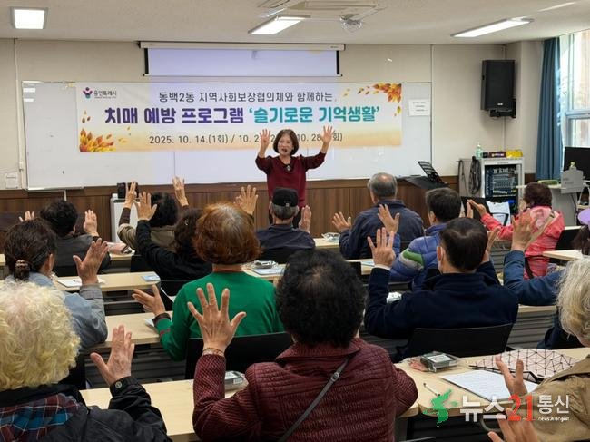 용인특례시(시장 이상일) 기흥구 동백2동은 지역 내 65세 이상 어르신 30명을 대상으로 치매예방 특화 프로그램 ‘슬기로운 기억생활’을 진행했다고 29일 밝혔다.이번 프로그램은 고령화 사회 속 어르신들의 신체적·정신적 건강 증진과 범죄 예방을 위해 지난 10월 14일부터 28일까지 총 3회에 걸쳐 운영됐다.각 회차는 실생활에 밀.