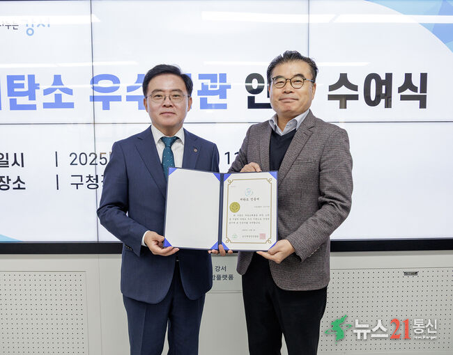 서울 강서구(구청장 진교훈)가 5일(수) ‘저탄소 우수기관’으로 선정되는 영예를 안았다. 탄소중립을 목표로 구정 전반에 걸쳐 지속적으로 추진해온 탄소배출 저감 정책을 인정받은 결과다. '저탄소 우수기관 인증'은 (사)도시재생안전협회가 지방자치단체, 공공기관, 기업을 대상으로 온실가스 감축 노력, 저탄소 정책 등...