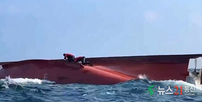 [뉴스21통신 박민창기자] 목포해양경찰서는 9일 오전 6시 50분경 전남 신안군 가거도에서 서쪽으로 약 81km 떨어진 공해상에서 98톤급 중국어선 A호가 전복됐다는 무전을 접수하고 즉시 구조에 나섰다고 밝혔다.이 사고는 인근에서 조업 중이던 다른 중국어선이 전복된 A호를 발견하고 VHF 통신망을 통해 신고하면서 알려졌다. A호에는 총 11명의 ...