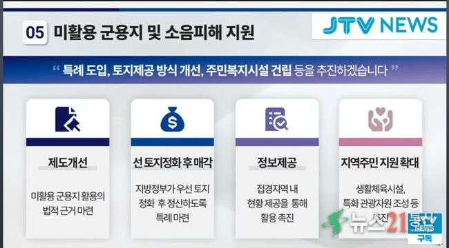 [뉴스21 통신=추현욱 ]이재명 대통령이 경기북부에 집중된 미군 반환 공여지 문제를 적극 해결하겠다는 의지를 밝힌 가운데 해당 지자체들은 숙원 사업이 해결될 수 있다는 기대감을 보였다. 일부는 더 파격적인 지원책이 제시되지 않은 점에 아쉬움을 나타내기도 했다.