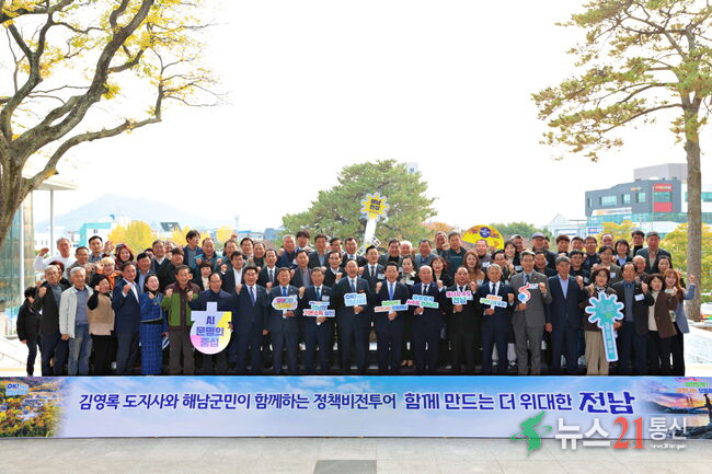 [뉴스21 통신=박철희 ] 전라남도와 해남군은 지난 20일 해남군청에서 ‘해남군 정책비전투어’를 개최하고, 인공지능(AI)·농업(Agri)·문화(Culture)·에너지(Energy)를 축으로 하는 대한민국 ACE(에이스) 비전을 제시했다.