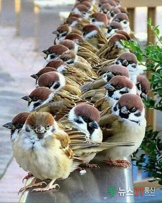 추위로 뭉쳐있는 참새