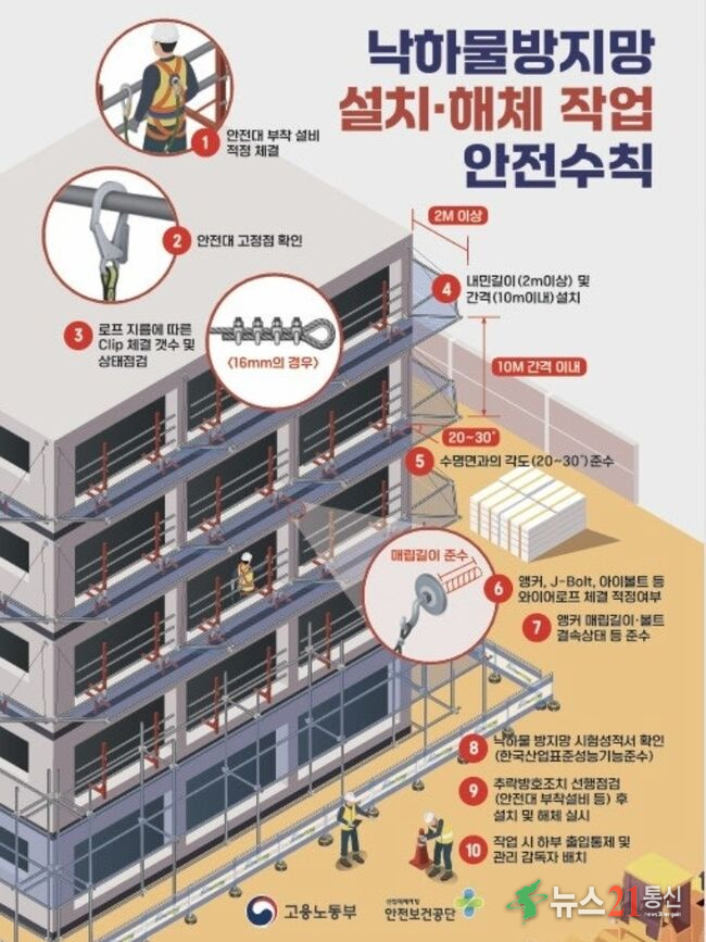 낙하물의 방호조치는 산업안전보건기준에 관한 규칙 제14조에 명시된 기본 중의 기본 안전조치다.