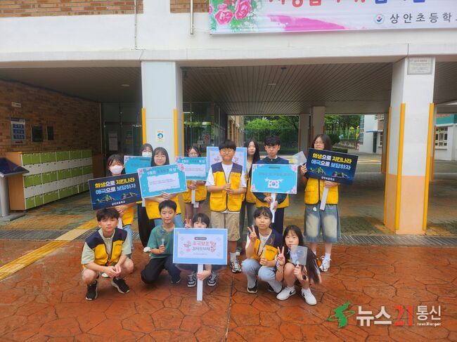 상안초등학교(교장 최대식) 학생자치회는 학교 담장을 넘어 사회적 가치를 실현하는 데 앞장서고 있다. ‘음악과 함께하는 아침 등굣길’로 학교 분위기를 밝히는가 하면, ‘호국보훈의 바람, 감사의 부채 홍보활동(캠페인)’, ‘함께 지키는 푸른 지구 홍보활동(캠페인)’ 등 전교생이 참여하는 프로그램을 직접 기획해 민주시민으로서의 역량을 키워가고 있다.