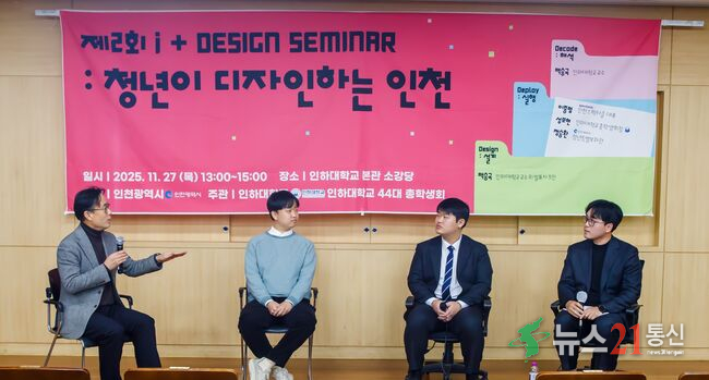 11월 27일 제2회 ‘아이플러스(i+) 디자인 세미나: 청년이 디자인하는 인천’은 청년 시각에서 지속 가능한 인천 미래를 탐색했다. 백승국 인하대 교수 발제와 함께 청년, 창작사, 학생회, 청년특보 등이 참여해 경험과 아이디어를 공유하고, 시내버스 노선 개선 등 실질적 정책을 직접 제안했다.