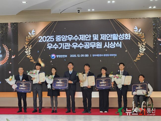 [뉴스21 통신=최세영 ]▲ 사진제공=울산광역시울산시는 12월 9일 오후 2시 정부세종청사 중앙동 대회의실에서 열리는 ‘2025년 중앙우수제안 시상식’에서 공무원 제안 부문 국무총리상(동상)을 수상한다고 밝혔다. 행정안전부가 주관하는 ‘중앙우수제안’은 국민과 공무원의 창의적 아이디어를 정책에 반영해 행정 서비스 ...