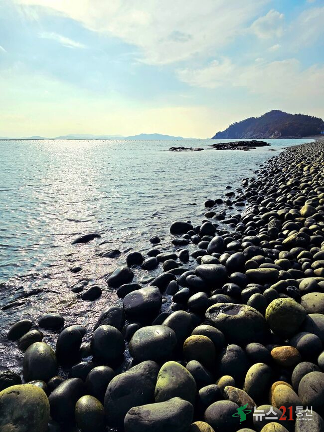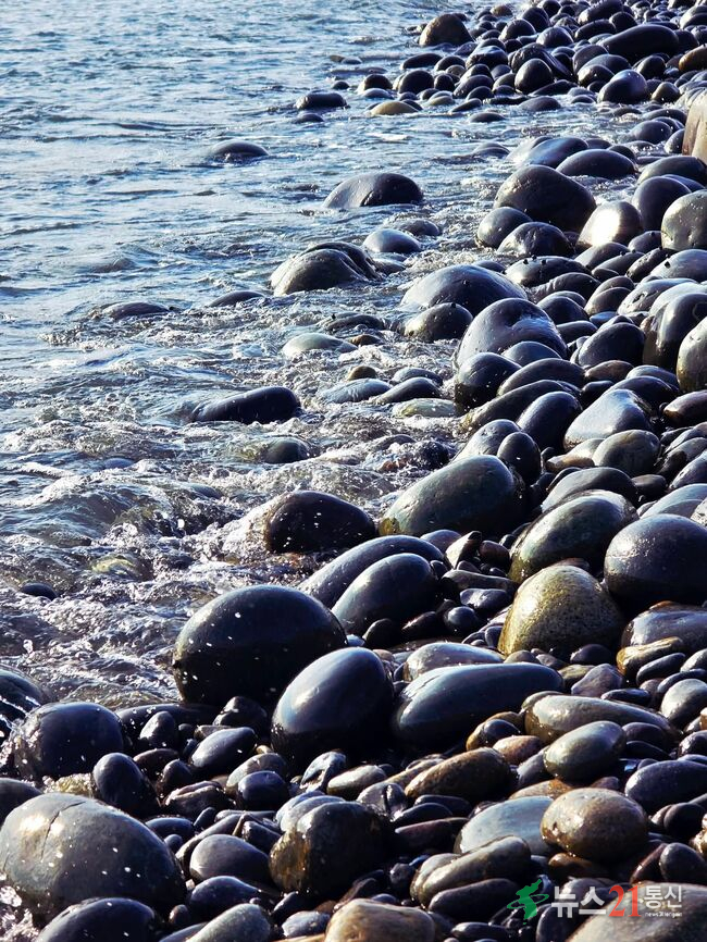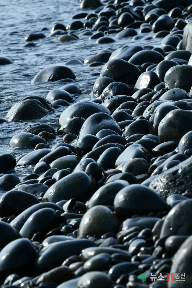 이 몽돌은 오랜 시간 파도와 마찰을 거치며 형성되어 독특한 자연 경관을 이룬다.