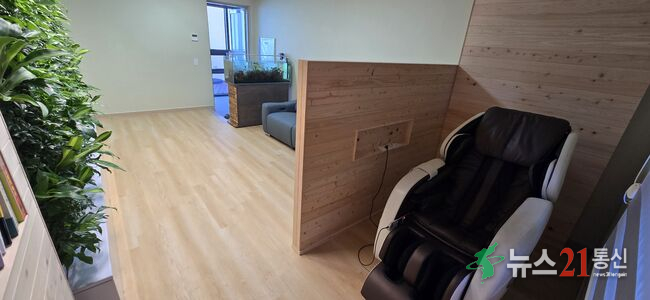 또한 심신안정실에는 수직정원 외에도 리클라이너 소파, 안마의자, 수족관 등이 함께 마련돼 직원들이 긴장을 풀고 재충전할 수 있는 휴식공간으로 활용될 예정이다.