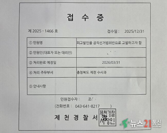이와 관련해 제천시민 A 씨는 12월 31일, 공직선거법 위반, 공무원의 정치적 중립 의무 위반, 개인정보 보호법 위반 혐의로 제천경찰서에 고발장을 공식 제출했다.
