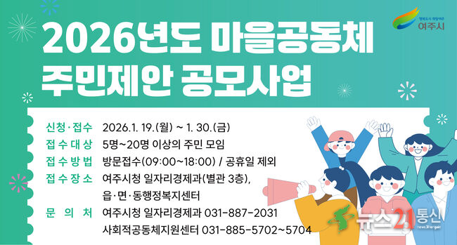 5. 울주군, 2026년 1단계 공공근로사업 참여자 모집 ▲사진제공:울주군청울산 울주군이 오는 5일부터 9일까지 ‘2026년 1단계 공공근로사업’ 참여자를 모집한다고 2일 밝혔다.이번 사업은 취업 취약계층에게 한시적 일자리를 제공하기 위해 마련됐다. 참여자는 총 101명을 선발할 예정이다. 신청자격은 사업개시일 기준 18세 이상으로 가구의 기준 중위소득의 60% 이하이면서 재산 4억원 ...