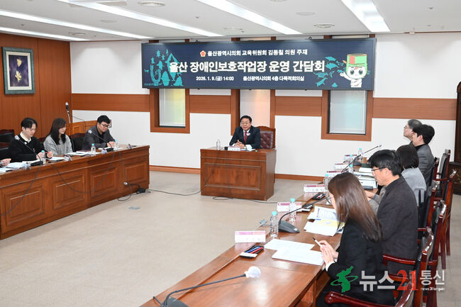 울산광역시의회 김동칠 의원(교육위원회, 달동ㆍ수암동)은 1월 9일 오후, 시의회 4층 다목적회의실에서 ‘울산 장애인보호작업장 운영에 관한 간담회’를 열고, 현재 울산 장애인보호작업장 운영에서 발생하는 현안 및 문제에 대해 논의했다.