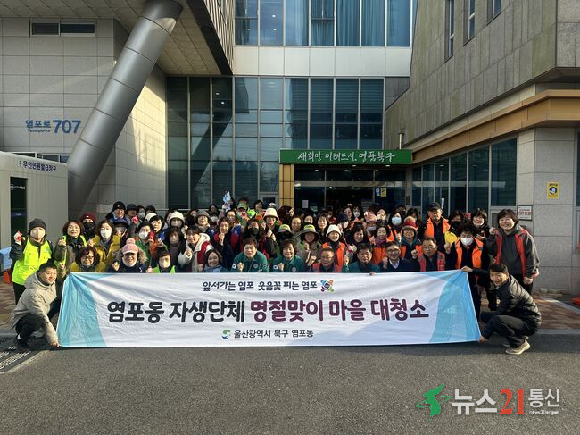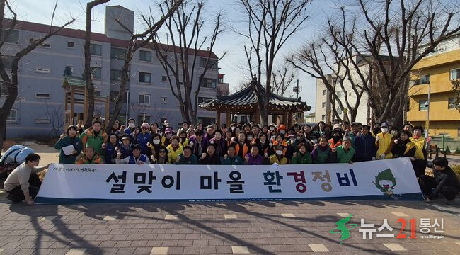 [뉴스21 통신=최병호 ](사진출처=울산북구청)북구 농소1동 행정복지센터와 자생단체 회원 등은 호계시장 및 수동마을 일원에서 불법투기 쓰레기 수거 등 설맞이 마을 대청소를 실시했다.