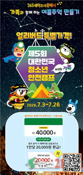 태백시(시장 이상호)와 강원특별자치도소방본부(본부장 오승훈)가 공동 주최하는 ‘제5회 대한민국 청소년 안전캠프 with 가족’이 오는 7월, 여름도시 태백에서 개최된다. 올해로 5회째를 맞이하는 이번 캠프는 국내 최대 안전체험 테마파크인 365세이프타운에서 7월 매주 금·토·일, 2박 3일 일정으로 총 4회차 운영될 예정이다...